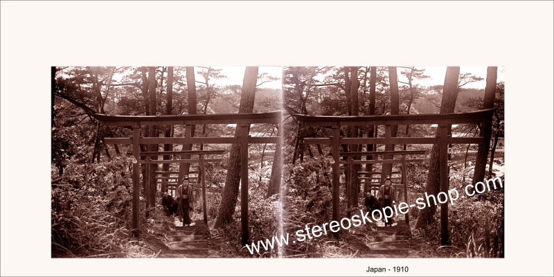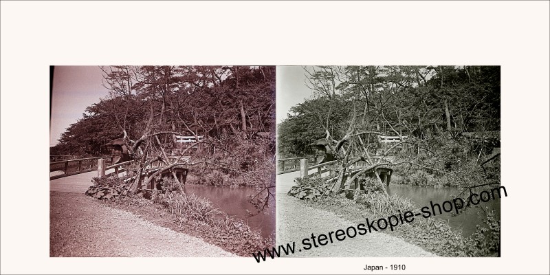 Diese Abzüge stammen von meinen alten Stereo-Glas-Negativen Format a 45*107mm. Ein Franzose hat sie ca. 1910 in Kobe und vermutlich auch in Tokyo - Japan gemacht. Er hat auf eine gute 3-D-Wirkung geachtet. Die letzten 2 Stereofotos sind Reproduktionen von anderen, alten Papier-Stereofotos. |