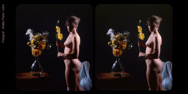 Dr. Walter Paist war ein sehr begabter Stereofotograf, der auch gerne junge, wohlgeformte Frauen ins rechte Licht gerückt hat, er machte viele seiner Fotos wahrscheinlich von 1950-1970, er starb 1990 in den USA. Da ich sehr viele seiner 1a - Erst-Original-Stereodias gekauft habe, konnte ich diese Stereofotos fast ohne Qualitätsverlust auf echtes Fotopapier belichten und hier anbieten. Absolut scharf !!! |