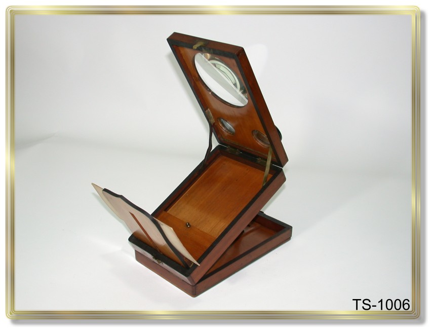 GRAPHOSCOPE - dekorativer Tischbetrachter um 1880 für Stereofotos 13 x 18 oder ca. 9 x 18 cm, sowie normalen Fotos oder Postkarten. Die Betrachtungswinkel, und natürlich auch der Fokus lassen sich verstellen. Alles aus Holz gefertigt, noch mit original Lackierung. Maße: 135mm * 215mm * 60mm hoch - Gewicht ca. 700 Gramm intakt, normale, unbedeutende Gebrauchspuren, Verkauf ohne Foto ! Preis incl. 19% Mwst. 185 EUR |